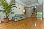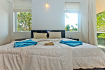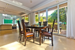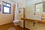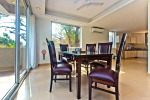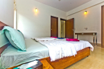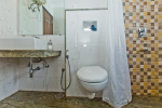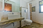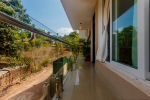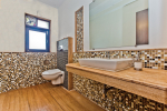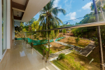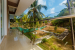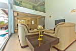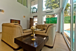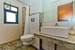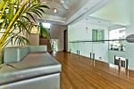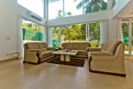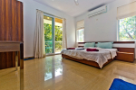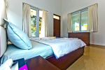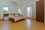 Bedrooms – The villa has two buildings. The main house has 5 double bedrooms, all en-suite and air-conditioned. A separate cottage stands next to the house with the 6th bedroom, perfect for teenagers who demand a little more privacy. All bedrooms come with attached verandahs, offering golf course and sea views. The master suite is located on the 1st floor. It comes with a private lounge and covered terrace. The bedrooms have large double beds, recliners, wardrobe, and study area. They all have unique color schemes. Large door opens to the verandah.