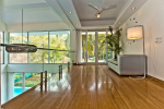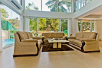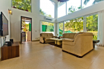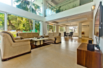 Living Room – This holiday villa for rent in Barbados has an open-plan living room and lounge that opens to a covered terrace that provides sweeping views. There are several comfortable sitting areas. Potted plants bring in the nature. This level of the house also has a dedicated media area with a television and DVD player. The games room with pool table, air hockey, table tennis, table football and a play station is in the adjoining cottage.
