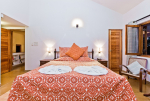 Bedrooms – This stunning Barbados villa for rent has 6 air-conditioned and en-suite bedrooms. 4 of them are in the main house, and the other 2 in the adjoining cottage. They are all private suites with access to a terrace offering sea views. Bright airy rooms with vaulted beamed ceilings. Sand-colored tile and textured coral-stone walls. White and beach-inspired blue colors will greet you when you enter. Coral, paisley, and flower prints make the suits stylish and serene.