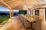 Swimming Pool – Clearly one of the highlights of the estate. The huge swimming pool terrace stretches towards the ocean. Tempting loungers and sun beds are all around. There is a hot tub at one end. A beautiful lawn with pathways surround the private swimming pool in this holiday villa for rent.
