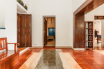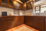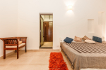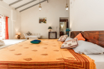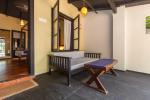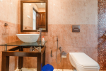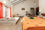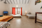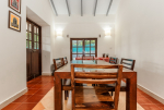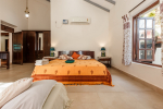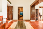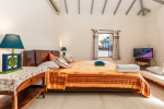 Bedrooms – The main house has 5 bedrooms, while the sixth bedroom is in the cottage. The media room also has a day bed. The bedrooms are all luxuriously appointed. Antique furniture and chandelier. Whitewashed walls. The beds have hypoallergenic pillows and quality cotton sheets. Hardwood or mosaic flooring. Satellite television. They all have a small library. There is a beautiful balcony outside with sitting with nature all around.