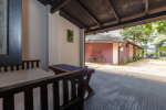 Swimming Pool – It is at the end of the terrace and overlooks the sea. The private swimming pool is surrounded by the gazebo, a covered patio, and one of the two chattel houses in this luxury villa for rent. It is at the center of the lush lawn. There are tall tropical trees all around. Loungers are placed beside the pool.