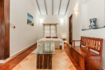 Living Room – The first thing you will see as you go in through the refined entrance hall is a beautiful hall that leads to the living room. This airy room has a 14-foot ceiling. White furnishings. There are several comfortable sofas, potted plants, and chandeliers. It leads to the covered terrace overlooking the swimming pool, gardens, and the sea. Antiques are spread out throughout this room.