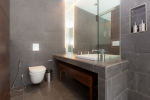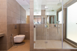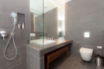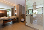 Bathrooms – Modern bathrooms with sink, shower cubicle with rainwater shower, and tub. Toiletries are provided.