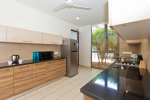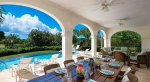 Dining, Kitchen – This villa for rent in Barbados has a fully-equipped kitchen with double-ovens, coffee maker, espresso machine, kettle, and a wine cooler. The cottage also has a small kitchenette with a toaster, stove, dish washer, refrigerator, and oven. There are two dining areas, indoor and outdoor. The outdoor dining area is beautifully laid out beside the swimming pool. Sitting for 8 guests.