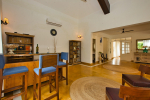 Living Room – Stay in this villa and spend time in its unique living room. Its décor and design comes with a pale palette, mahogany furniture, and British Baroque furnishings. This is an open-plan living room with a games table, Karaoke, and bar area at one side. Large French doors lead to the covered terrace where there is BBQ. The villa also has a TV room with surround sound and comfortable sofas where you can listen to music and see movies.
