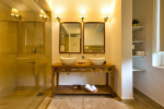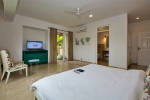 Bedrooms – Ocean Pearl villa has 9 spacious bedrooms, all en-suite and air-conditioned. The master bedroom is on the top floor. It comes with a private terrace that overlooks the private swimming pool and grounds, which stretch all the way to the sea. Each bedroom is tranquil and elegant. Antique furniture. Large beds, side tables, study table, and a walk-in wardrobe. All bedrooms have flat-screen satellite televisions. High ceiling. Soft colors add a soothing touch.