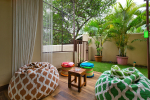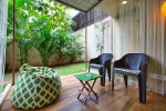 Kitchen, Dining – There is a small kitchen just beside the living room. It is fully equipped and opens to the garden and terrace. There are several dining areas, indoor and outdoor. Many guests love to have their food beside the swimming pool with lush greenery all around. The verandah is the place for banquet-style dining.