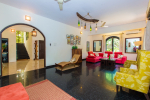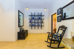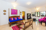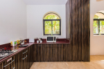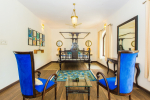 Kitchen, Dining – The formal dining area is located at one side of the living room, with sitting for 8 guests. there is ocean-front dining as well in the verandah with bespoke light fixtures and colorful Kilim furniture. The estate’s kitchen is fully equipped for guests who want to make their own meals. With chef service, you may not have to enter the kitchen during your stay in Barbados. There is also a bar and two wine coolers.