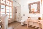 Kitchen, Dining – The villa’s formal dining area is on the right side of the hallway. There is a big mahogany table with sitting for 12 guests. there is a smaller glass-topped table in the fully equipped kitchen that comes with a refrigerator and everything you will need to prepare a meal. Outdoor dining areas too on the pool terrace.