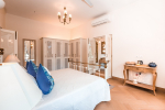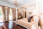 Bedrooms – There are 5 well-appointed bedrooms in the house for 10 guests. Two of them are master bedrooms. One of them has beautiful fabrics from the Italian designer Versace and also exquisite Italian furniture. They are all huge and airy. Each come with king or twin beds, a sitting area, study table, and wardrobe. Large-screen television. Beautiful lamp shades and paintings. Open the large French door and you will see lush greenery and the sea outside. There are mini fridges and safes. Personal office with computer, fax machine, telephone, and printer for those who must work on vacation.